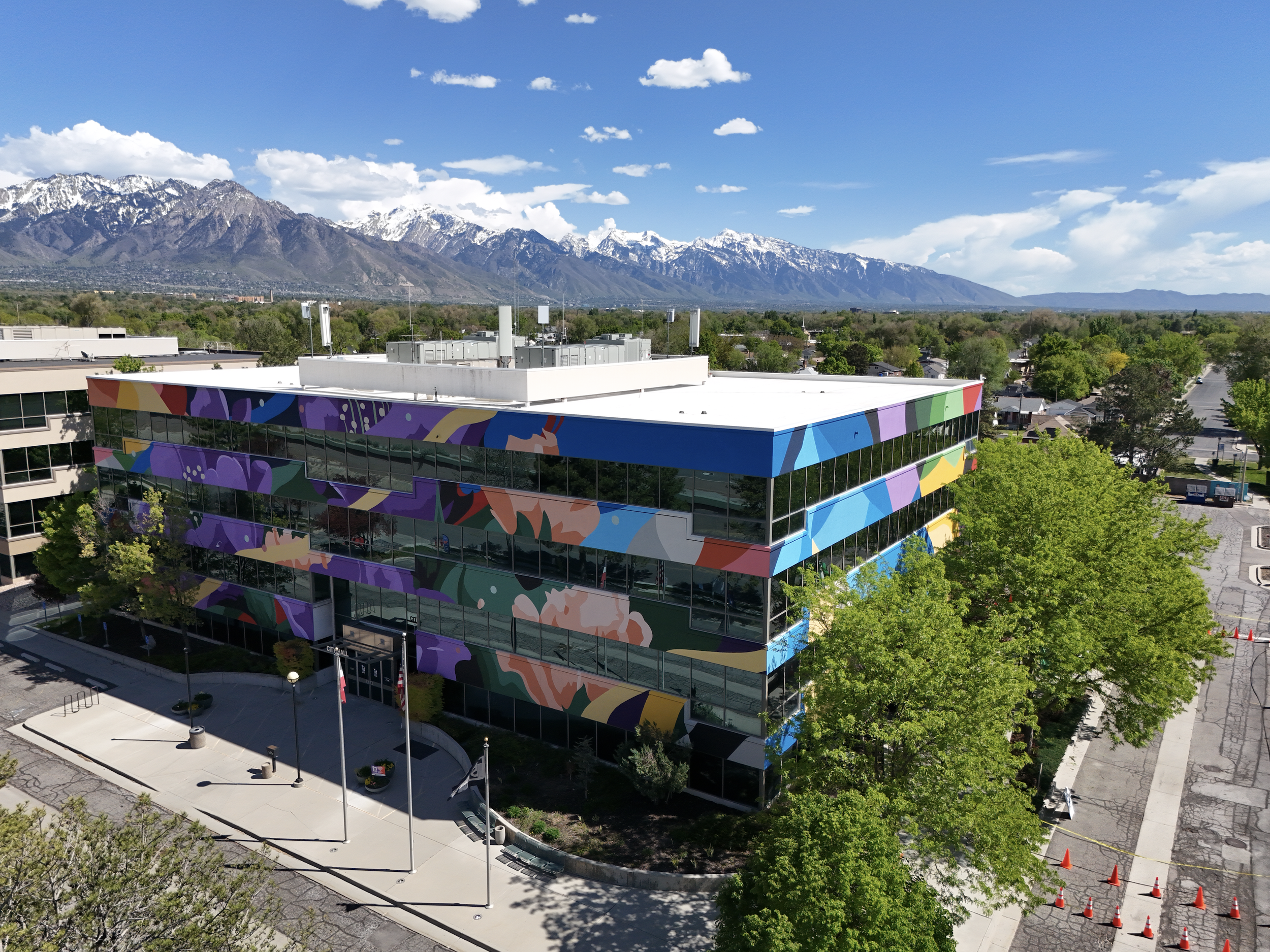 Commissioned by the City of South Salt Lake, Utah, for the South Salt Lake Mural Fest 2024 & 2025. Located on the City Hall Building, Flourish was completed in two phases across the south, north, and west façades of the building.