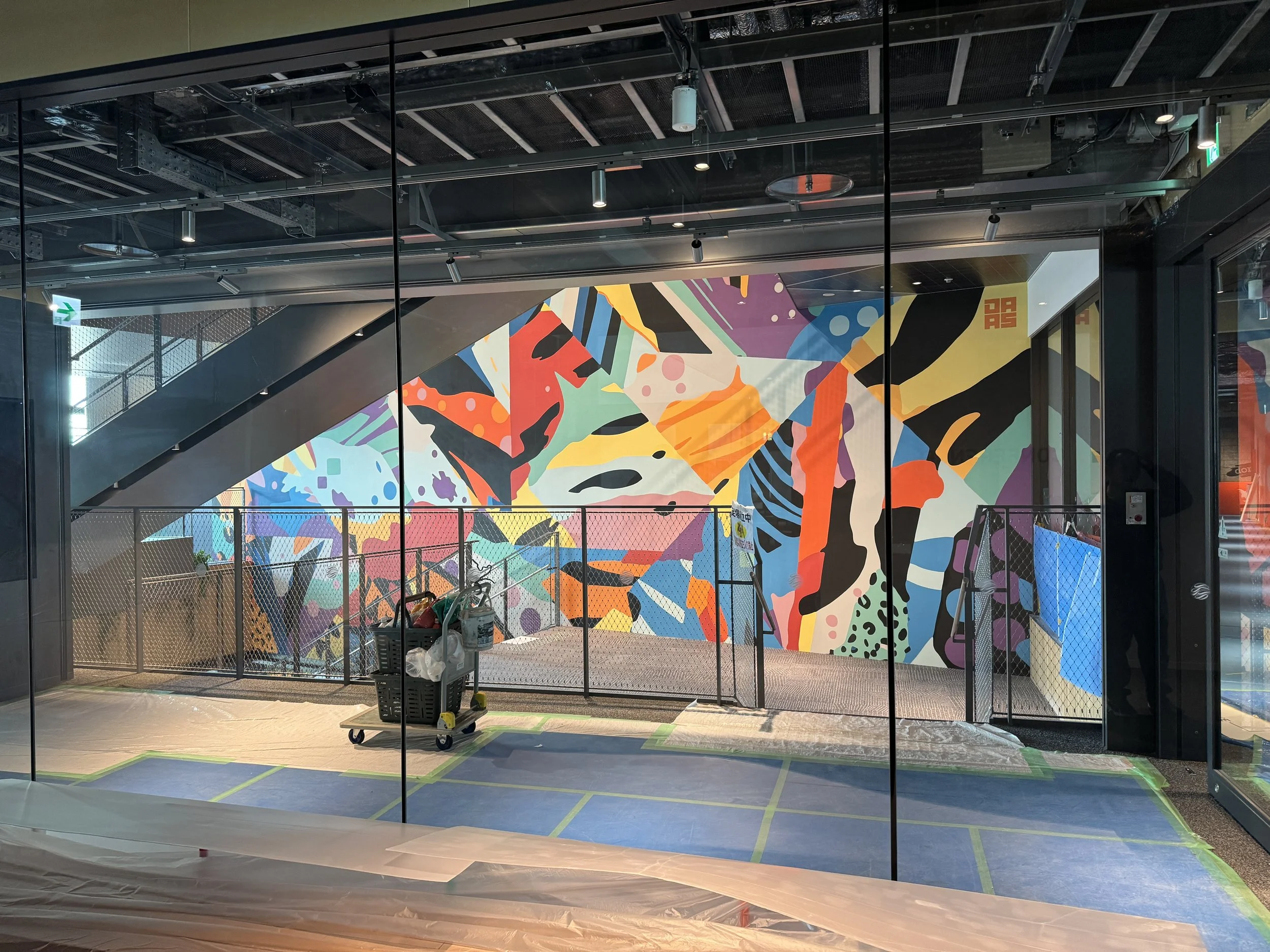 Curated by Tokyo-based Interculture Art (ICA) and located at JAM BASE(ジャムベース) inside the Grand Green Osaka North Building, this series of murals enlivens a shared work, creative, and rental space.