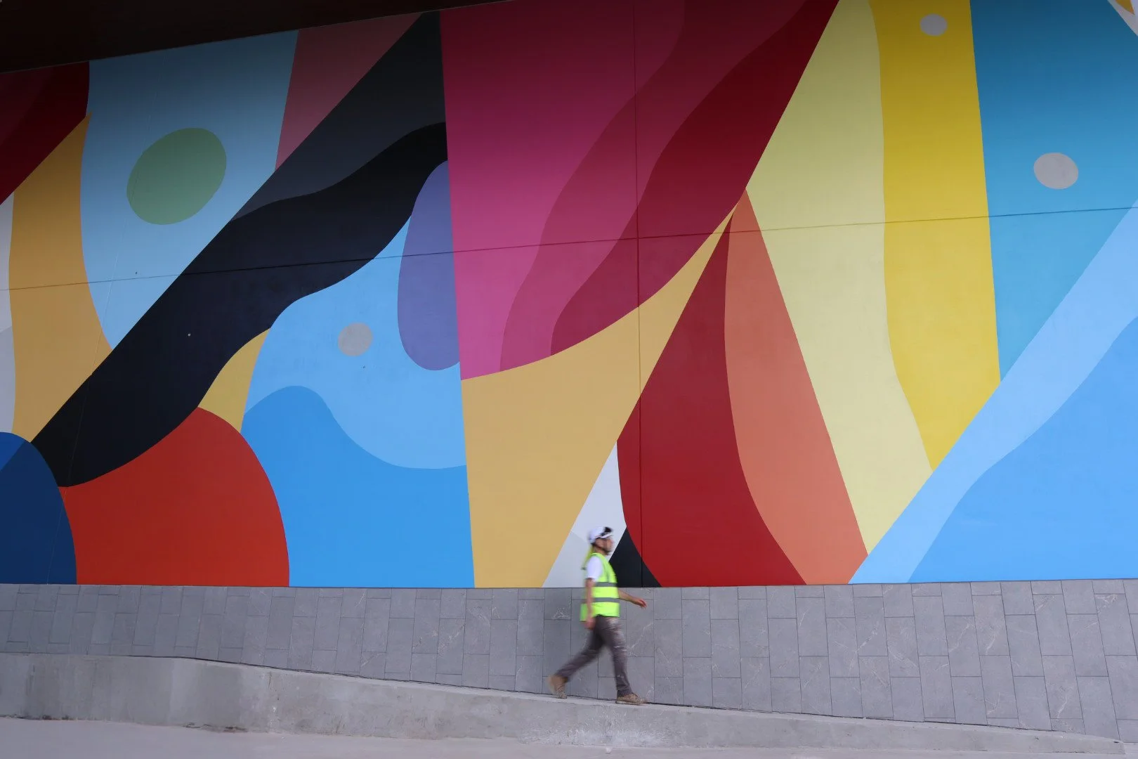 Drift & Flow, created for The Travis luxury high-rise apartments in Downtown Austin, Texas, connects the architecture to the natural movement of the nearby river and the energy of the Waterloo Greenway. The mural’s flowing composition and vibrant color palette create an uplifting atmosphere that enhances the sense of place and provides residents with an inspiring, welcoming environment.